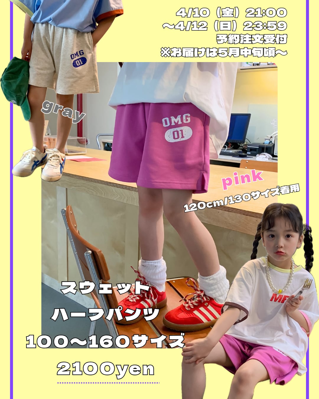 【予約】100〜160 スウェットハーフパンツ