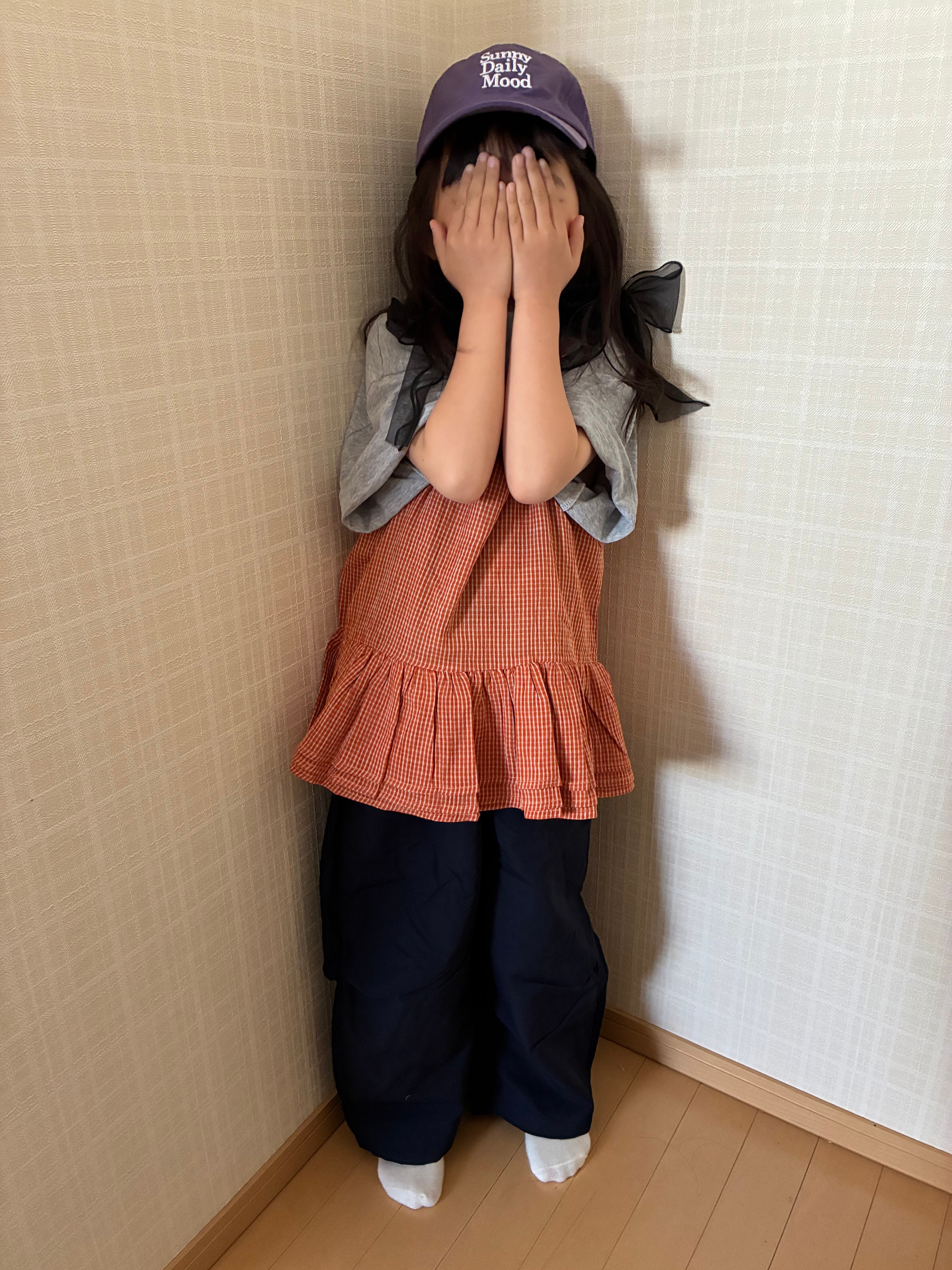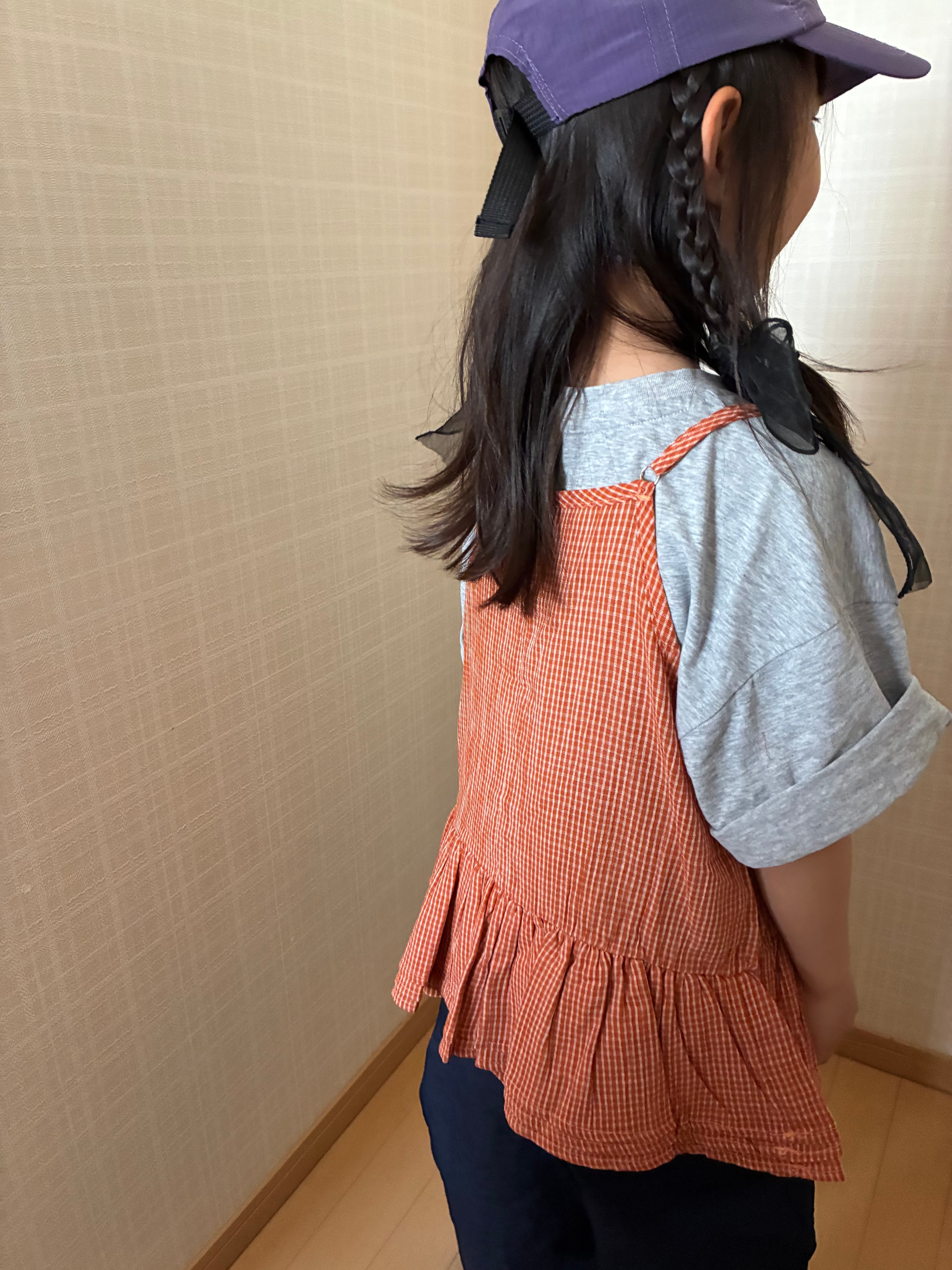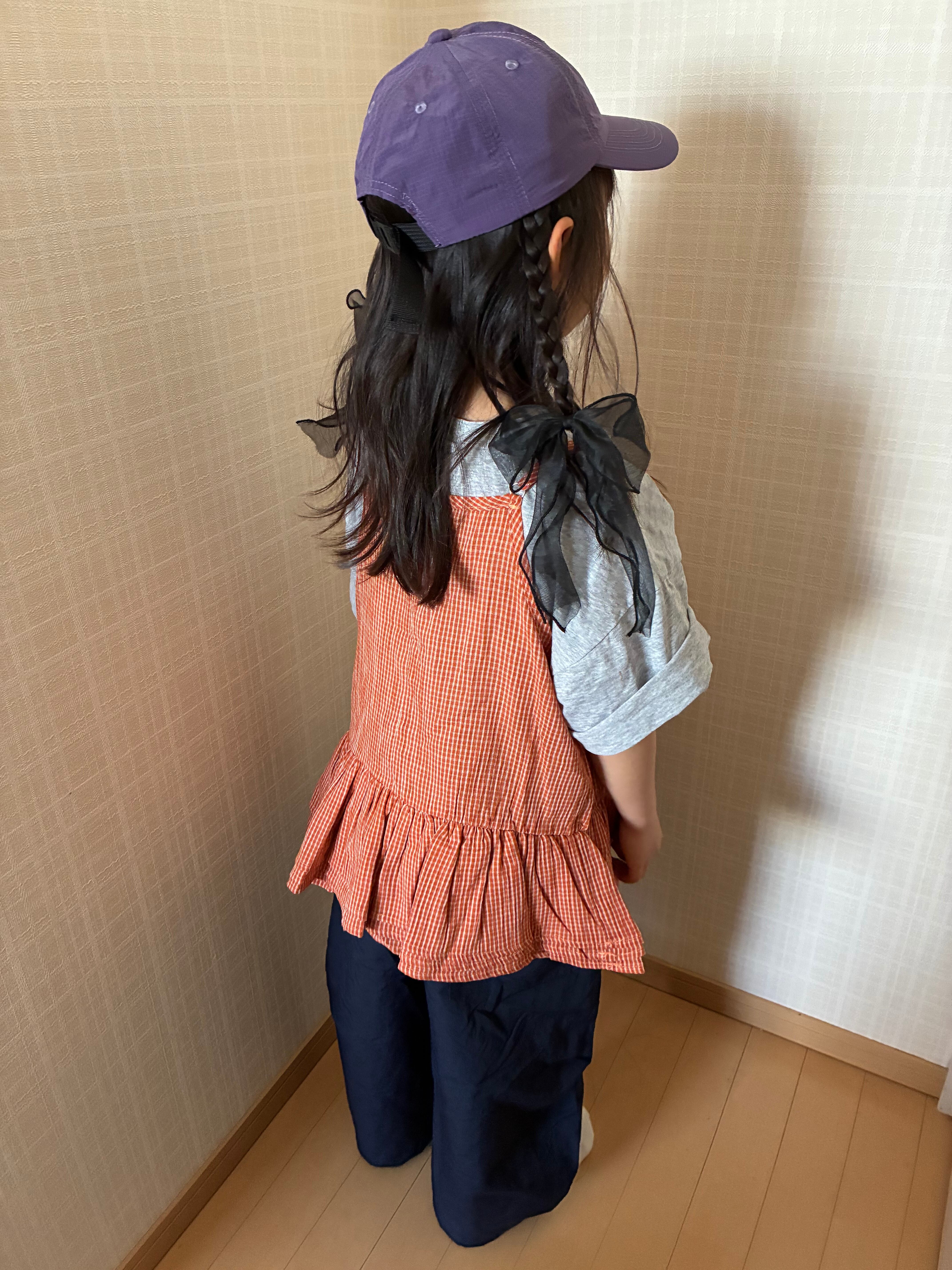 【予約】90〜140 オレンジギンガムチェックキャミトップス