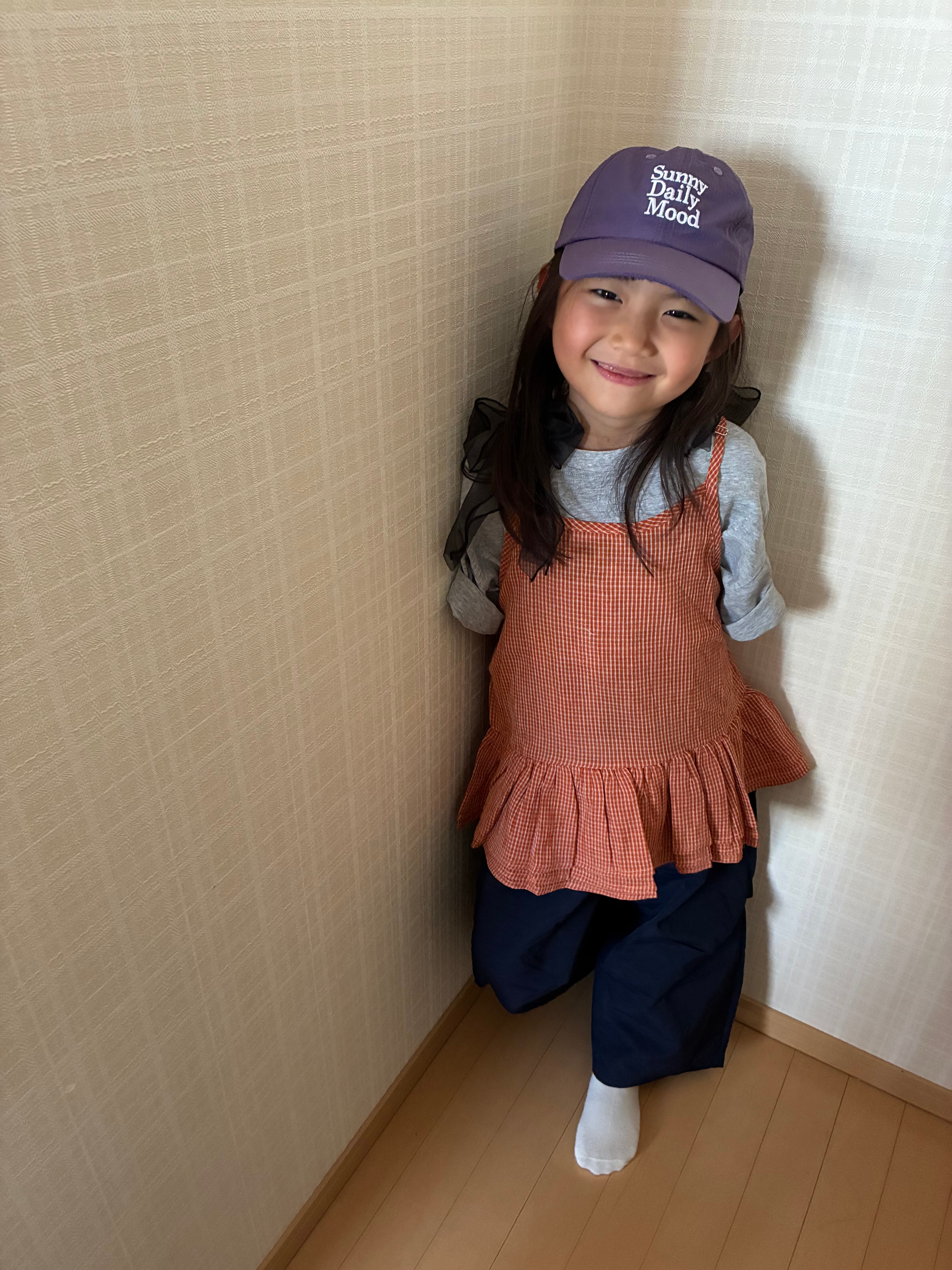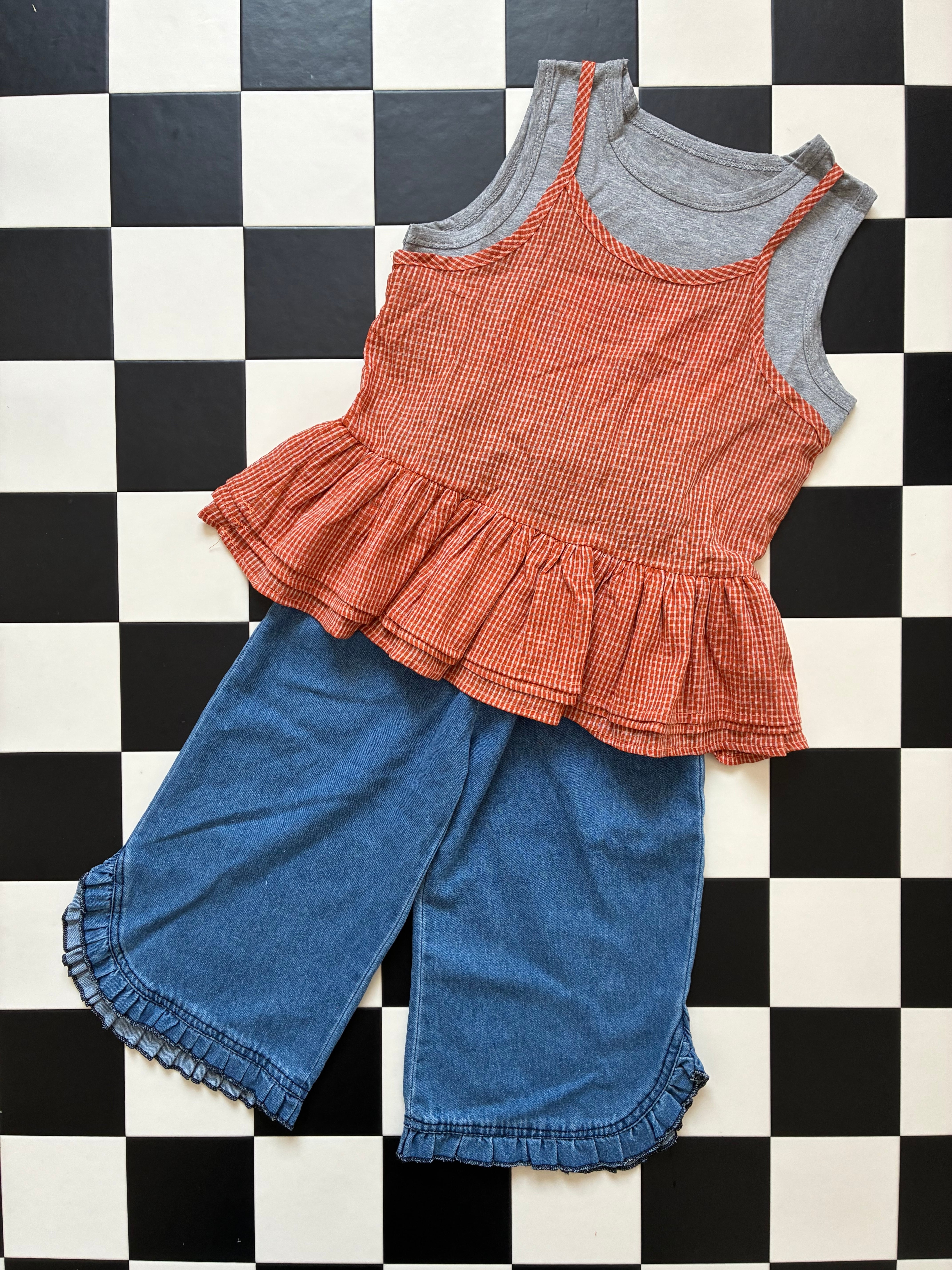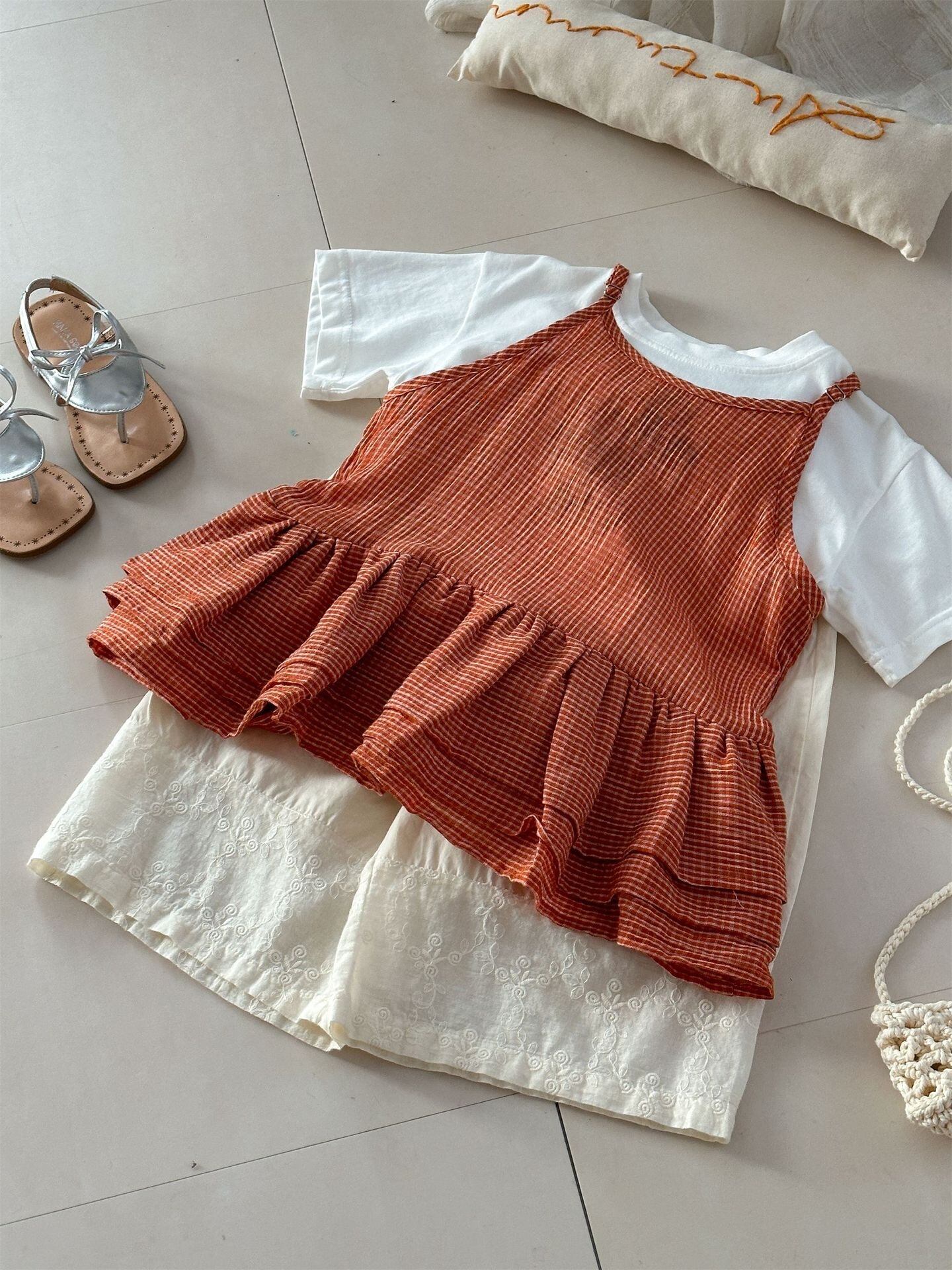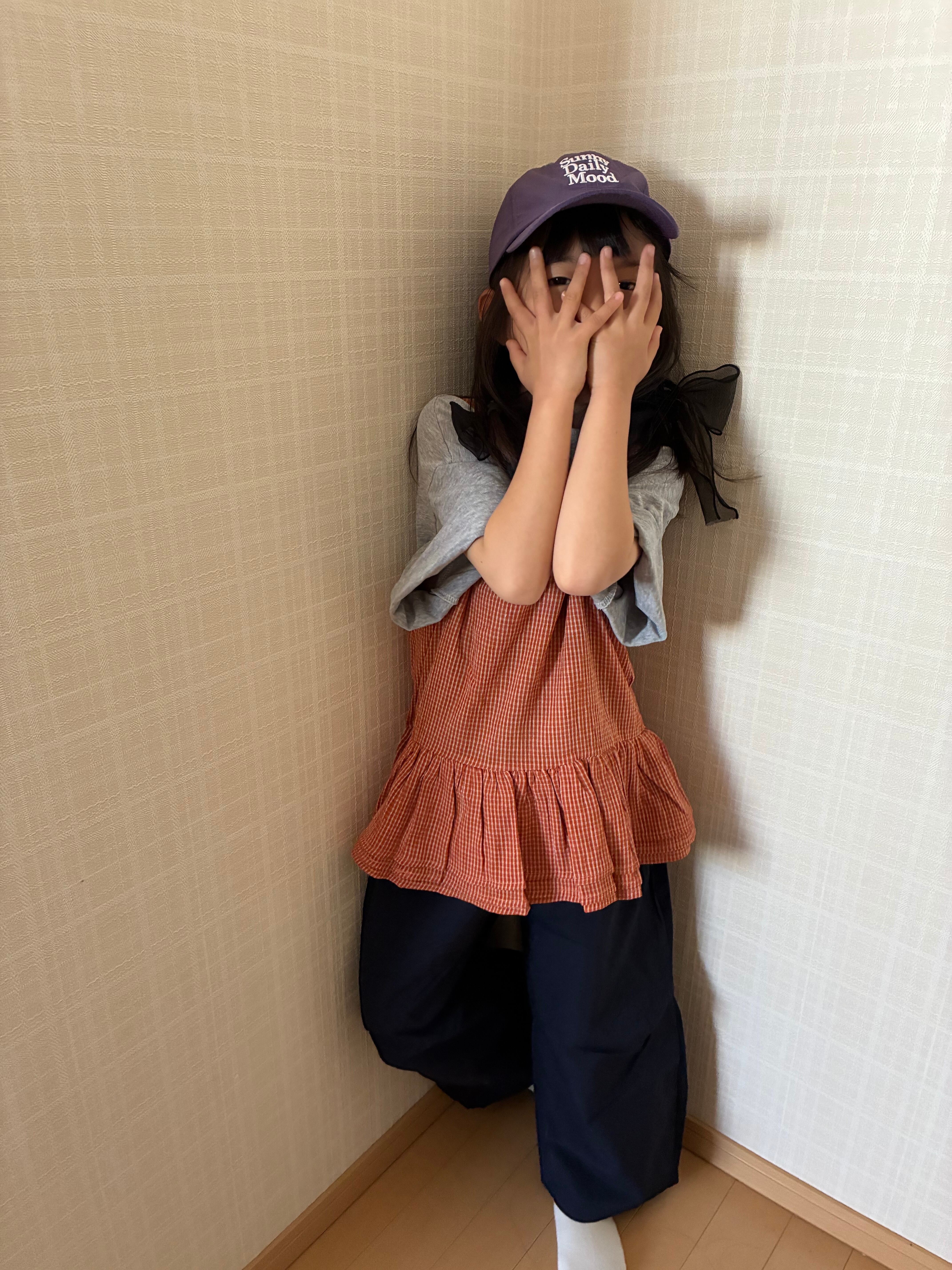 【予約】90〜140 オレンジギンガムチェックキャミトップス